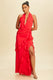 • About the fit: The Here For The Frill Red Ruffle Maxi Dress is true to size. The halter neckline is adjustable and the dress has a bodysuit. If you are between sizes, we recommend you size up.